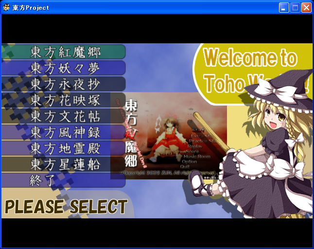 東方ゲームの管理ソフトみたいなもん。ここから各ゲーム起動できる。