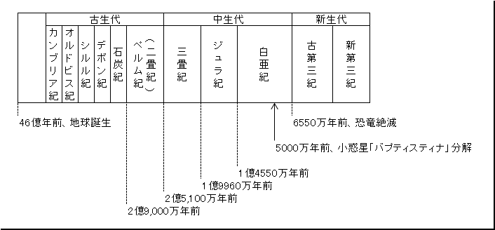 メキシコ・ユカタン半島の先に、チクシュルーブ・クレーターと呼ばれる巨大隕石孔がある。地球にはほとんど存在しないが隕石に多く含まれる、イリジウムの 鉱物が豊富に見つかっていることから、今から6500万年前に直径約10kmの小惑星が地球に衝突した痕とされている。そしてこの衝突が、ほぼ同時期に起 きた、恐竜をはじめとする多くの種の大量絶滅の有力な原因となっている。