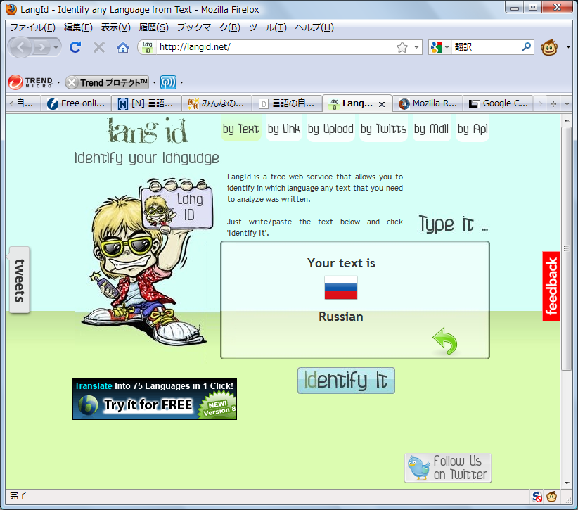 言語の自動判別無料ツール「LangId」 - 翻訳情報総合サイト powered by TRIPOD