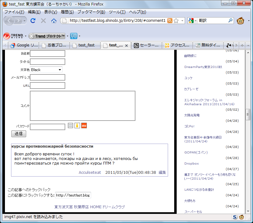 2011/05/10、良くわからない言語のコメントが付いた。