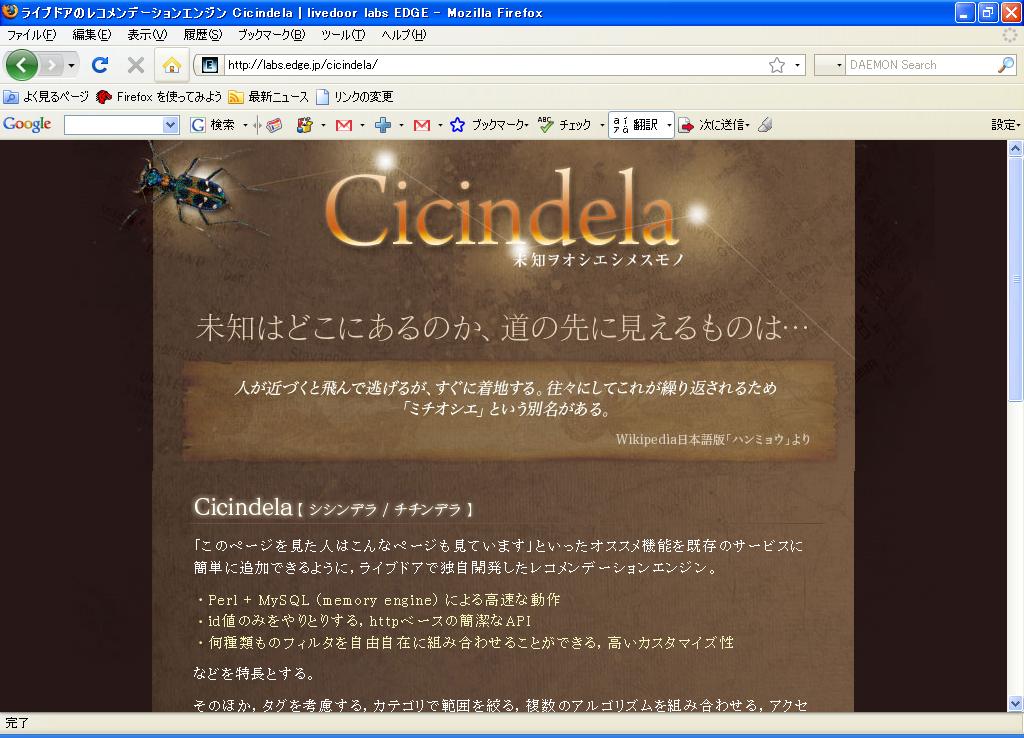 ライブドアのレコメンデーションエンジン Cicindela (livedoor labs EDGE)